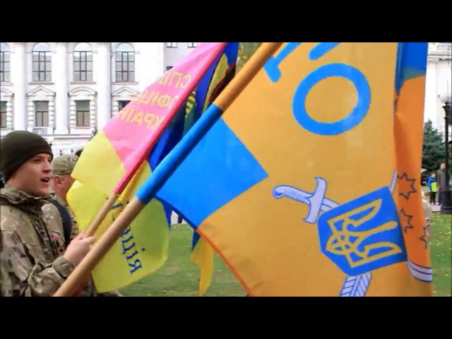 Шествие прошло через центр города и завершилось у музея АТО, где для бойцов выступили участники проекта "Песни, рожденные в АТО".