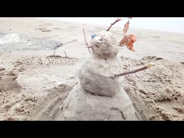 Маленького "песковика" накануне Нового года соорудили прямо на центральном пляже и даже сняли его на видео.