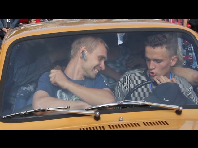 - Я рассчитал на бумаге, что, если сиденья подвинуть вперед максимально, то туда влезет больше людей. Вместимость машины просто феерическая. То есть, я даже, если вы слышали, завел двигатель, 17 человек в машине, я завел двигатель. Если бы один человек подвинул ногу, я бы даже смог поехать, - рассказал владелец автомобиля Никита Литвин.