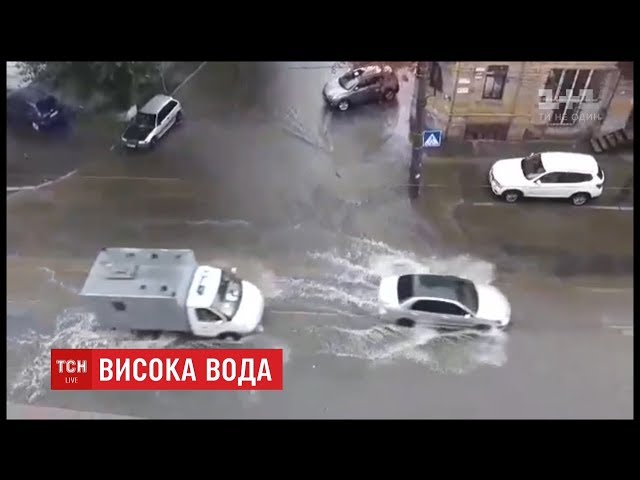 Вечером в Киеве прошел мощный ливень с грозой, из-за чего столичные улицы превратились в сплошные лужи, сообщил ТСН.