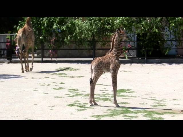 Сегодня малыш, которого мы назвали Занзибар, впервые увидел белый свет. Из своего домика он галопом выбежал на улицу, не рассчитав своих сил, врезался в забор и упал. Встав на лапы, маленький жирафик побежал к своей маме.