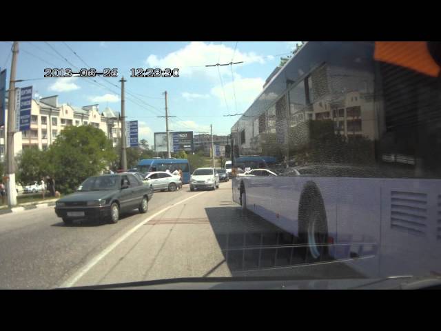 В Севастополе возле остановки "улица Шостака" сегодня днем, примерно в 12.20 серебристый седан с российскими номерами врезался в маршрутку, передает