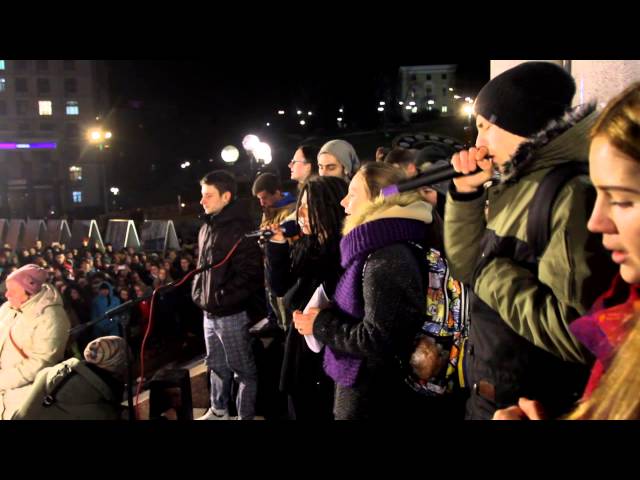 После минуты молчания на Майдане зазвучали песни группы под гитару в исполнении музыкантов-аматоров. Все кто знали слова - тихонько подпевали.