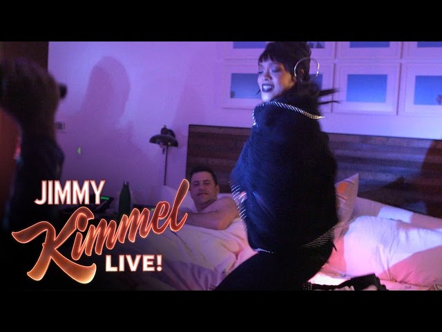 Кстати, в День смеха Рианна разыграла Джимми Киммела. Он явилась к нему в спальню ночью и спела свой новый хит "Bitch Better Have My Money". Судя по выражению лица ведущего, он такого явно не ожидал. Выходка Рианны сопровождалась световыми эффектами и взрывами конфетти. Быть может звезды лукавят, и розыгрыш все же был запланирован, однако все-равно выглядит очень эффектно и правдоподобно.