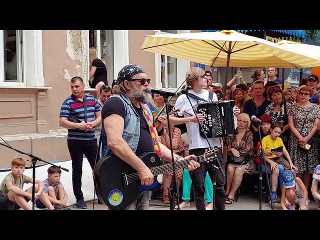 "Утро начинается с неожиданной встречи и новости! В планах было другое первое сообщение, но жизнь непредсказуема! Сегодня в 13:00 бесплатный концерт Бориса Гребенщикова на Суворова 8 возле Туристической кофейни ХерсON. Приходите и сообщите друзьям!" - разнеслось с утра 14 июня сообщение по соцсетям, и в означенном месте собралось несколько сотен поклонников БГ.