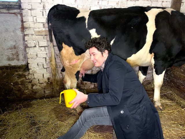 В первом выпуске проекта артист показал, как доил молоко в коровнике, а затем устроил импровизированный концерт.