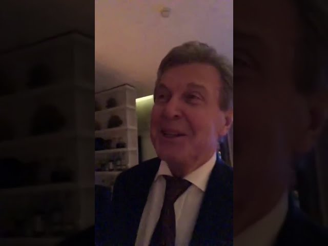 Пародист и певец не ограничился поздравлением в соцсетях - взял микрофон в руки и на банкете, спев в честь Лещенко: "Только мы с тобой не постарели, только головы немного поседели". Именинник подпевал ему, сидя в зале, а рядом с ним скромно улыбался Валерий Меладзе.