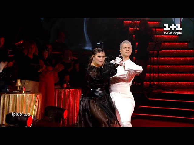 Фронтвумен KAZKA Александра Зарицкая и ее партнер Юрий Мешков порадовали зрителей страстным танго. Оценка жюри - 16 баллов.