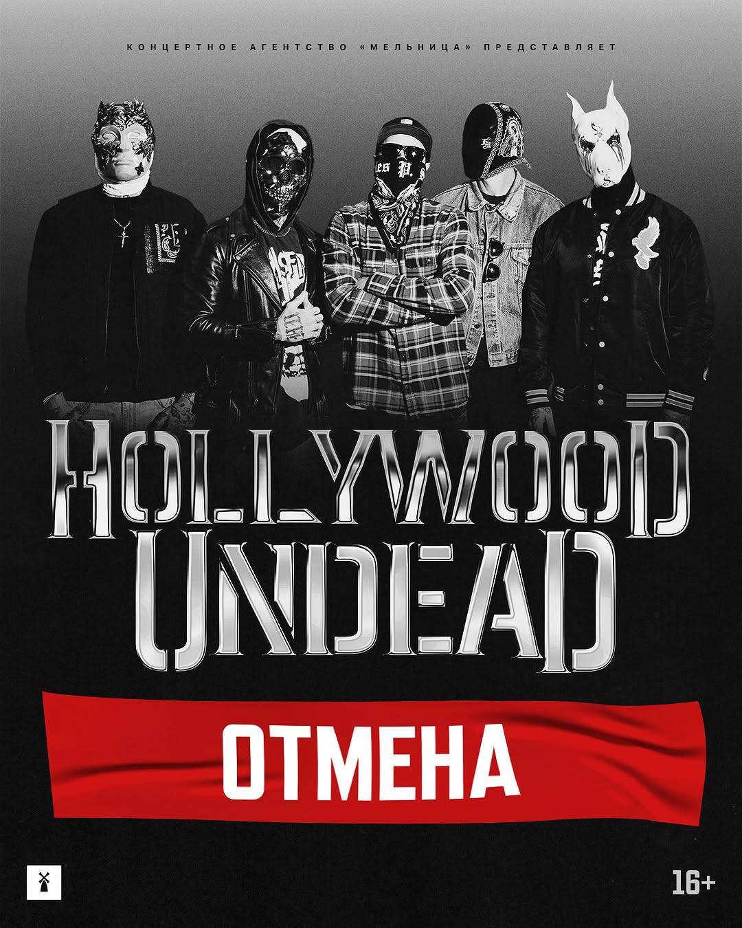 - С огромным сожалением сообщаем, что в последний момент перед выходом в продажу, под давлением общественности Hollywood Undead приняли решение отложить свой визит в Россию, - пишут росСМИ со ссылкой на концертное агентство "Мельница".