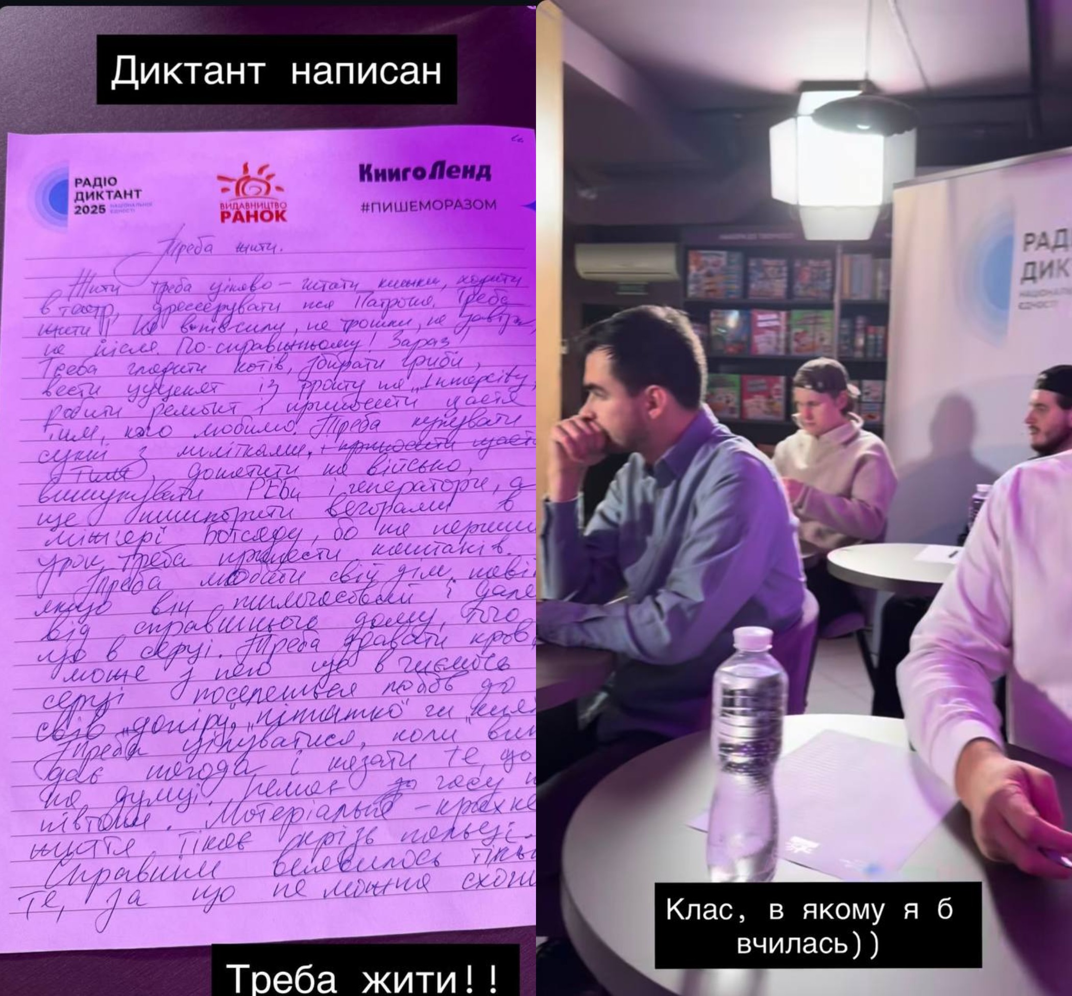 - Бегу писать диктант национального единства. А вы будете его писать или нет? Еще полчаса у вас есть времени, чтобы включиться и написать вместе со всей Украиной.
