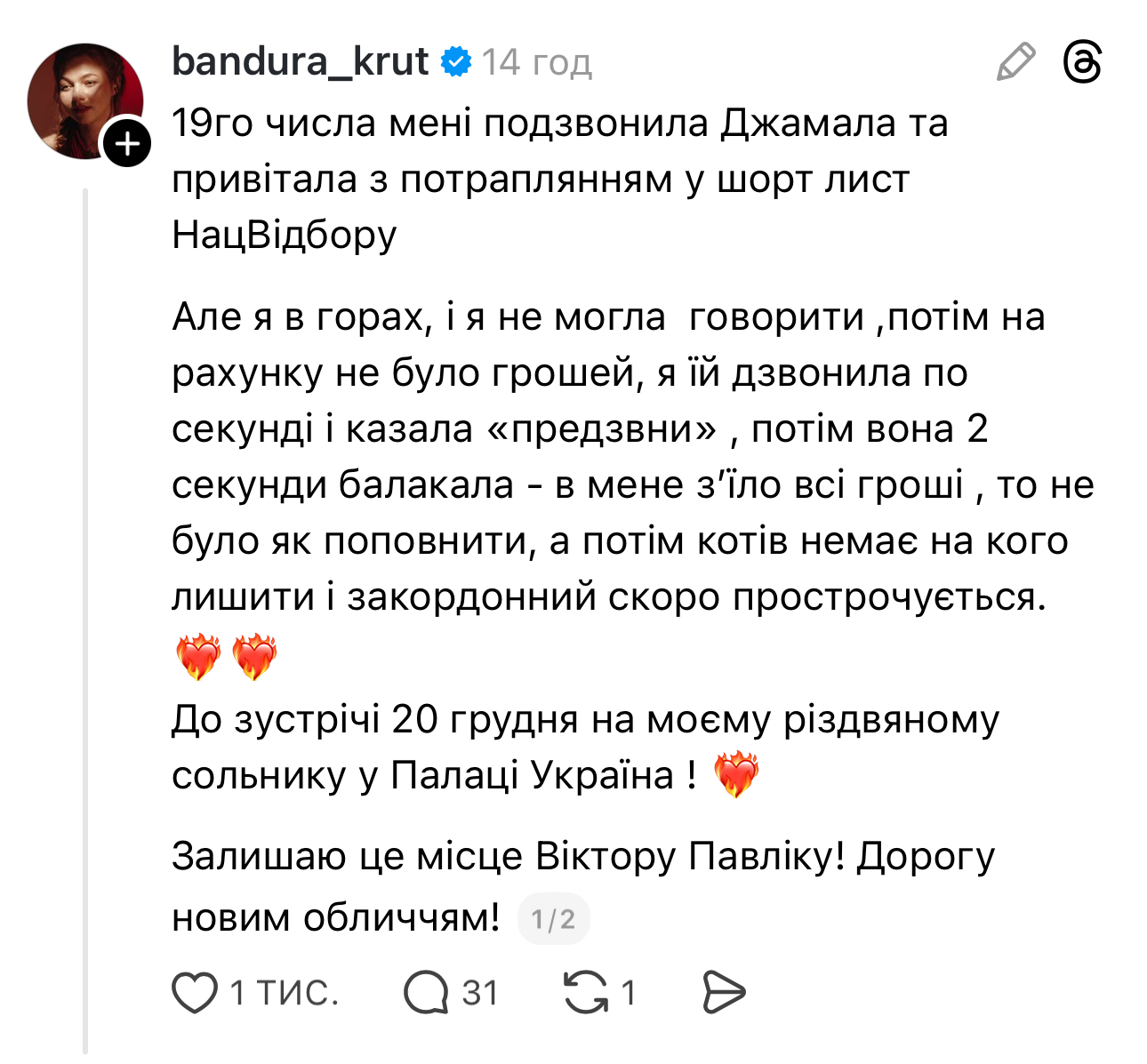 Наконец к флешмобу подключилась и сама продюсер Нацотбора, которая подтвердила, что 19 ноября таки обзвонила весь украинский шоубизнес.
