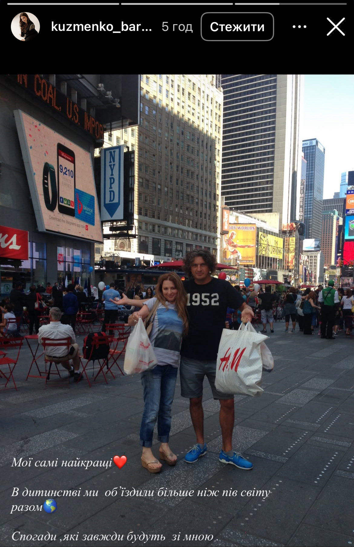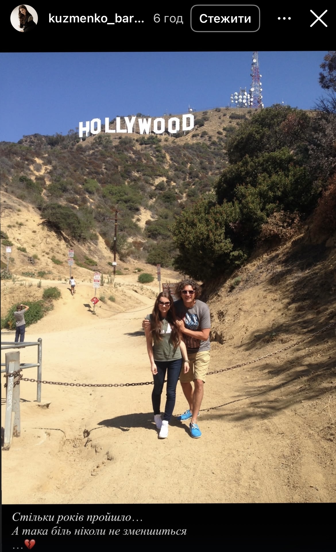 На одном из фото Андрей Кузьменко занимает дочь на фоне надписи «Голливуд» в Калифорнии. Также Барбара показала фотографию родителей во время путешествия США, где Кузьма вместе с супругой Светланой Бабийчук держат пакеты после шопинга.