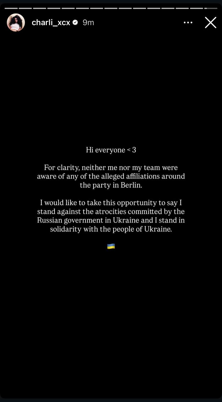 Charli XCX не знала о причастности россиянки к организации афтерпати в Берлине. Об этом британская певица написала в Instagram.