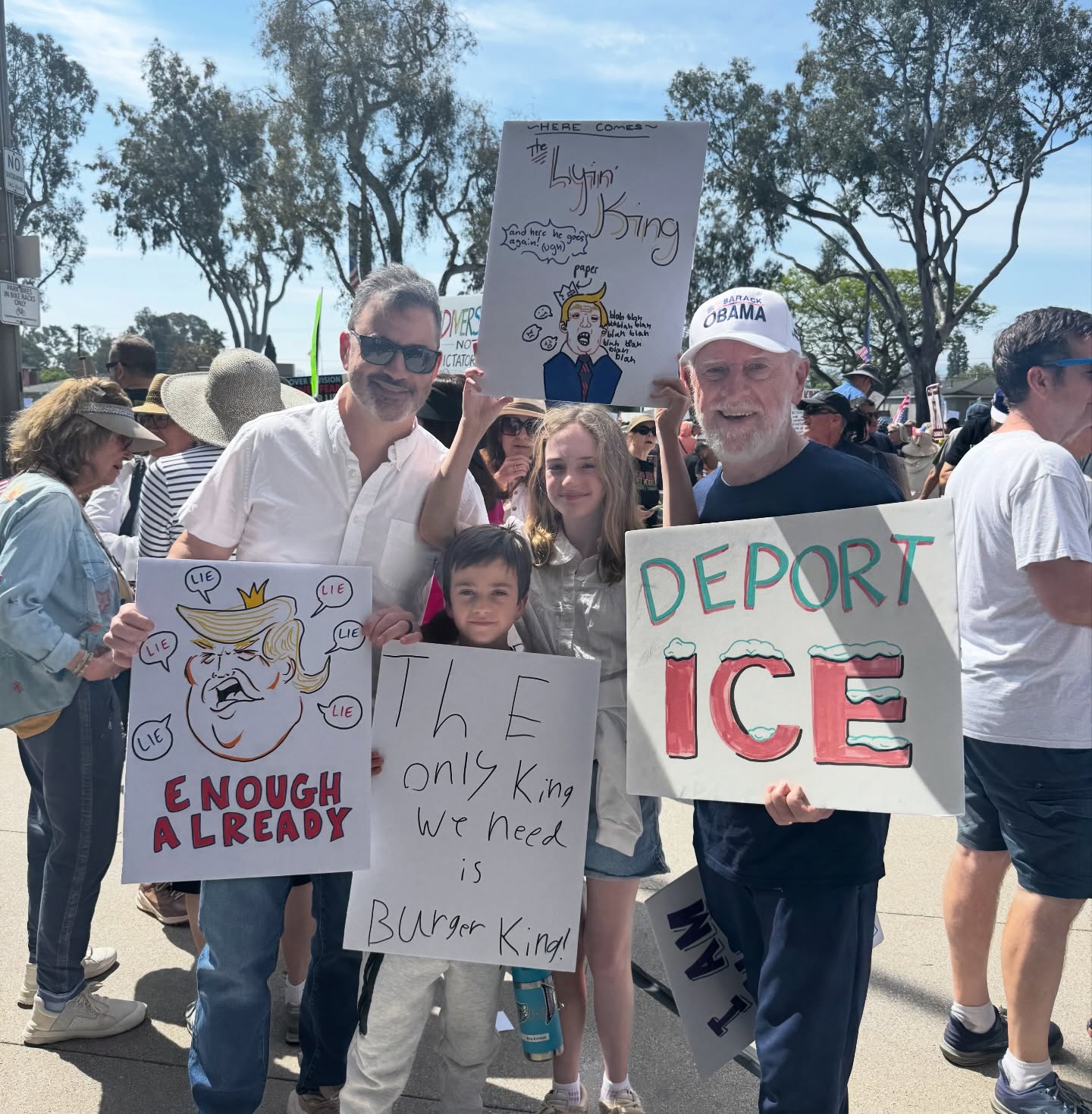 Американский комик и ведущий Джимми Киммел опубликовал фото с протеста в своем Threads, не указав, где именно находится.