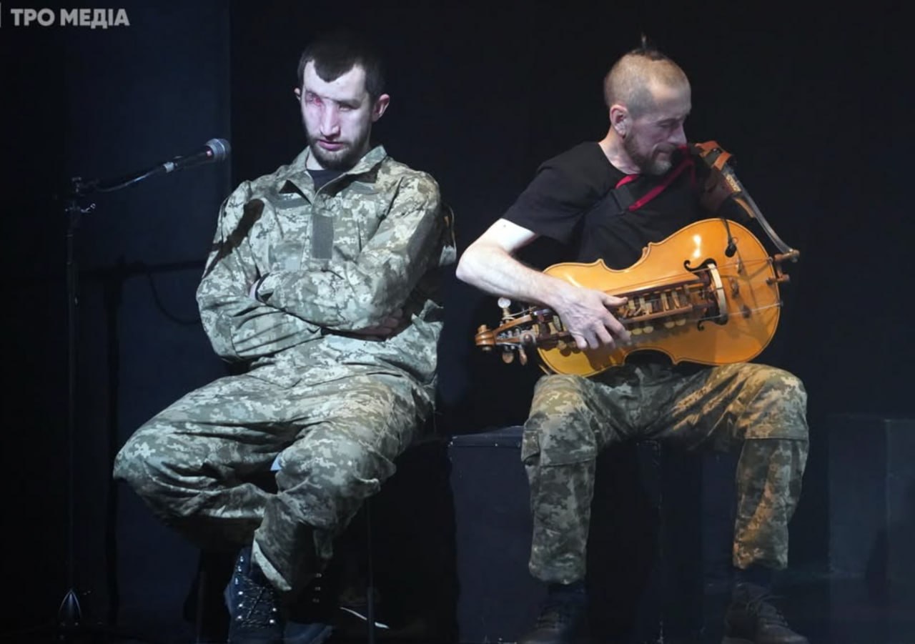 Участники спектакля "Энеида" Андрей Оноприенко с позывным "Циркуль" и Роман Трохименко. Фото: Инстраграм ТРО Медиа