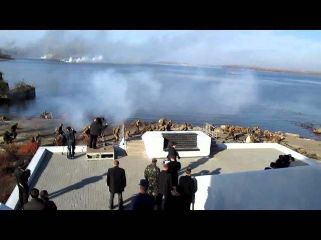 В присутствии около сотни тысяч зрителей, среди которых был и специально приехавший на праздник президент Виктор Янукович, а также немногочисленные ветераны – участники тех кровавых событий, "Красная Армия" на понтонах начала переправу.