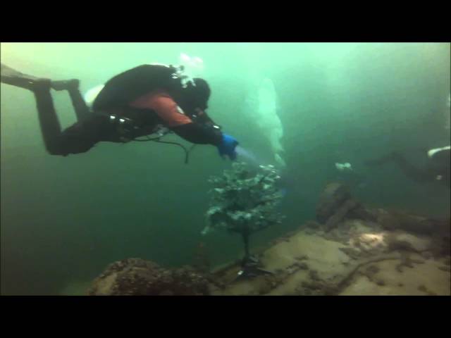 Глубина карьера 48 метров, но дайверы не стали спускаться так низко. Накануне встречи одноклубники из "Dir-Diving" установили елку на 9-метровой глубине, куда во время слета хозяева с гостями и ныряли, прихватив заполненные водой (чтобы не всплыли, значит) игрушки.