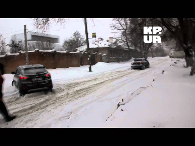Снегопад на Днепропетровщине начался вечером 27 января. К утру областной центр и окрестности замело полностью. Высота снега и свисающих с кондиционеров сосулек доходит до полуметра. Тяжелее всего народу приходится на окраинах, где машины даже из дворов не могут выехать, а значит, нет колеи, по которой можно добраться до остановок общественного транспорта.