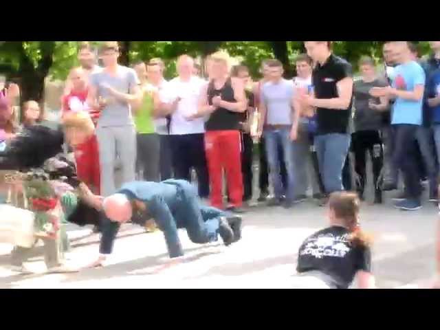 К отмечанию Дня Победы в Днепропетровске с девизом "В память о деде отожмусь за победу" присоединились и активисты движения Workout. Около полусотни молодых, сильных и красивых ребят и девушек задались целью отжаться 34 032 раза, ведь именно столько часов длилась Великая Отечественная война. К ним с энтузиазмом присоединились не только спортивные зрители, а даже детишки и ветеран.
