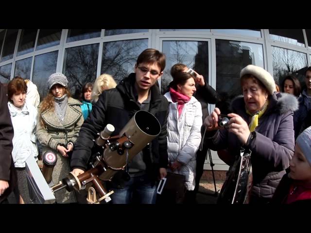 Главная площадка наблюдения за солнечным затмением была устроена около городского планетария. Три телескопа и специальные затемненные "гляделки" были к услугам нескольких сотен днепропетровцев, которые собрались тут к полудню, когда затмение было в максимальной фазе. Фильтры для наблюдения за редким природным явлением можно было приобрести за 5 гривен прямо на месте, и всем желающим их не хватило – быстро закончились. Но люди не отказывали друг другу и по первой же просьбе делились "гляделками" тем, кому их не хватило.