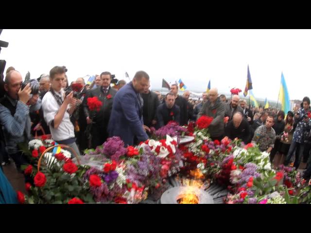 Уже у монумента Слава, один из организаторов шествия Борис Филатов призвал бойцов с уважением отнестись к празднику и провести его тихо, без конфликтов, а Геннадий Корбан призвал быть добрее друг к другу.