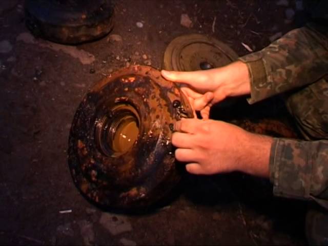 Известно, что найденные противотанковые мины, разработанные еще в 60-х годах прошлого века, предназначены для выведения из строя гусеничной и колесной техники. Взрыв происходит при наезде гусеницей танка или колесом автомобиля на верхнюю крышку мины при условии, что мина находится во взведенном состоянии. Кстати, их можно устанавливать даже в снегу и под водой и храниться там они могут долго.