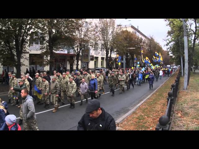 Несмотря на моросящий дождь и достаточно прохладную погоду, возле Днепропетровской облгосадминистрации, где проходили торжественные мероприятия по случаю Дня защитника Украины, собралось около 500 человек. После возложения цветов к Памятному знаку Героев Небесной сотни колонна в сопровождении военного оркестра выдвинулась на площадь Героев Майдана.