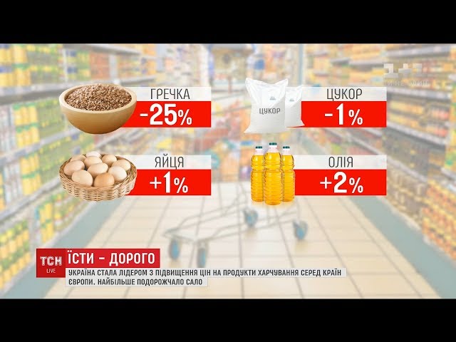 Украина стала лидером среди европейских стран по росту цен на продукты питания. За год потребительская корзина украинцев в среднем подорожала на 15%. Об этом говорится в сюжете ТСН.