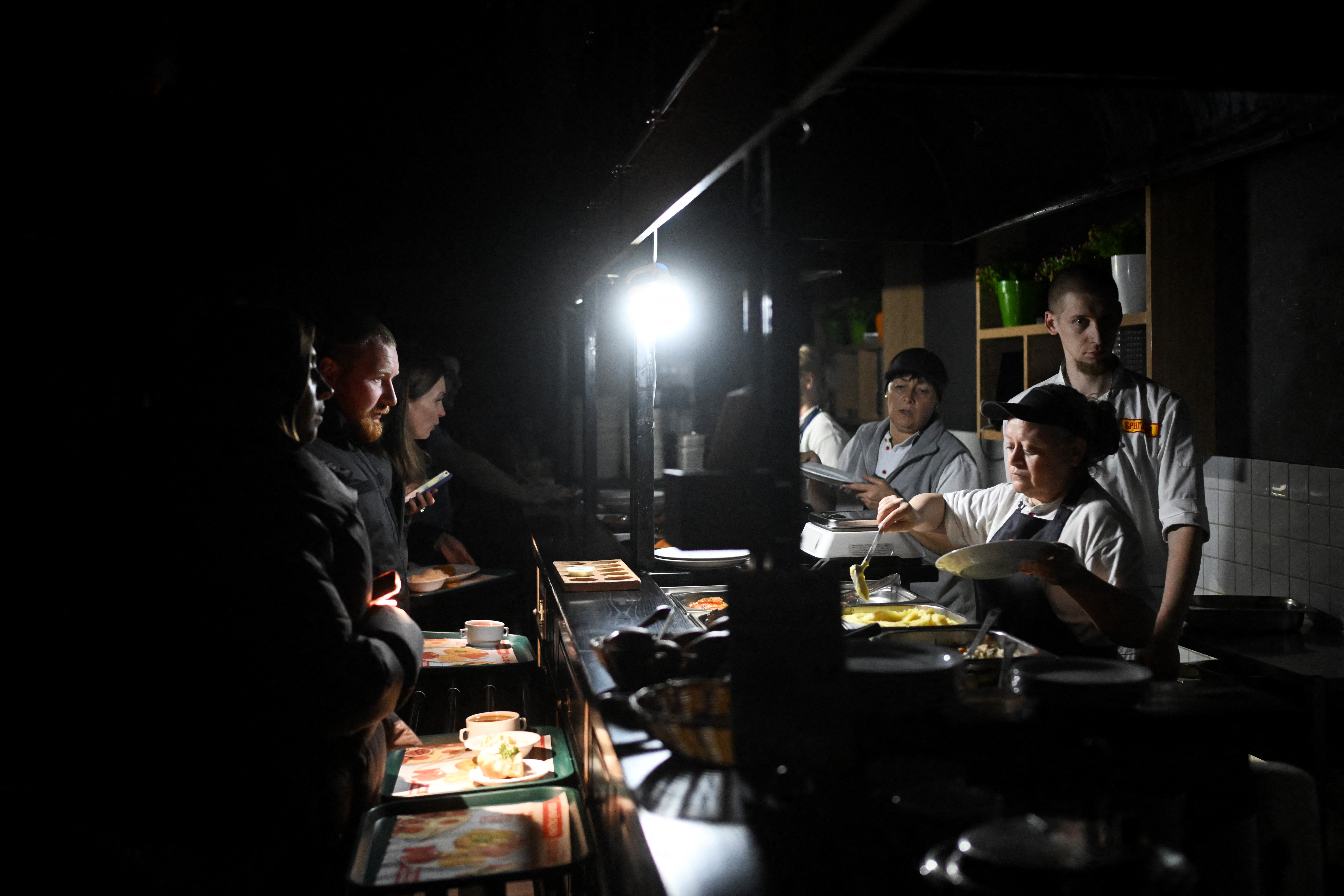 Кухни некоторых ресторанов работают при отключениях – но при фонариках. Photo by Sergei GAPON/AFP с помощью Getty Images