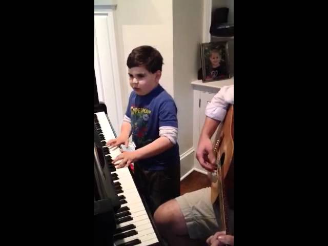 На видео видно, как мальчик в футболке с надписью "Супермен" самозабвенно бьет по клавишам, периодически подбадривая свою аудиторию: "Давайте все вместе!", "Вы сможете это!". При этом он даже успевает подсказывать сидящему рядом гитаристу слова песни.