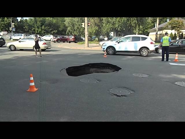 Провал диаметром около трех метров и глубиной четыре метра образовался на пересечении улицы Ливарной и Скляренко, передает корреспондент "Комсомольской правды в Украине" с места ЧП.