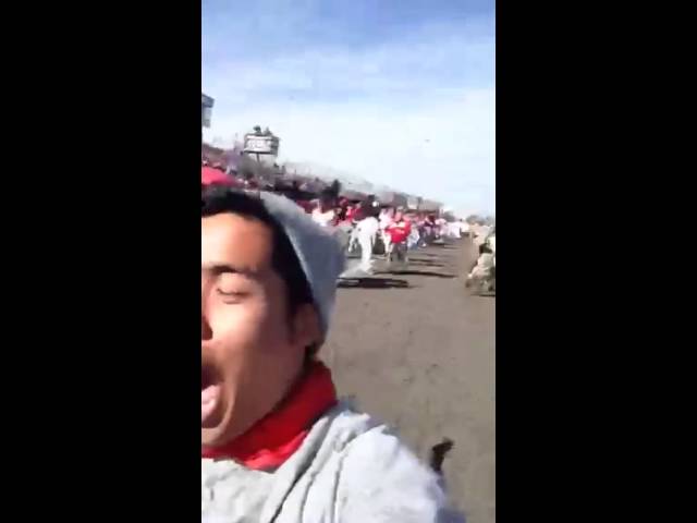 В американском штате Техас молодой парень по имени Кристиан снял себя на камеру мобильного телефона себя во время Хьюстонского забега быков.