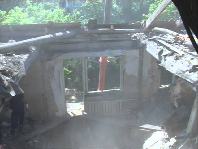 Взрыв почти полностью уничтожил квартиру на пятом этаже, а также серьезно повредил пару комнат на четвертом. Взрывная волна снесла и часть чердака. Бетонная плита, служившая перекрытием между этажами, обвалилась. К счастью, в нижней квартире жильцов не было, т.к. комнаты готовили к ремонту.