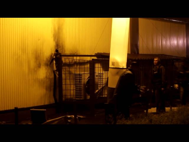 Внутри здания сразу же началось задымление. На место происшествия приехали сотрудники МВД. Сейчас в столице объявлен план "Перехват". Правоохранители ищут автомобиль, на котором скрылись злоумышленники. Территория возле магазина оцеплена. Также в 50 метрах от здания был замечен Mitsubishi L-200 с символикой батальона "Азов".