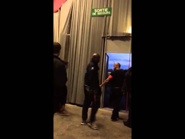 Активистки забрали микрофон, стоящий у столика и начали выкрикивать лозунги на французском и арабском языках. Докладчики сразу удалились, в то время как охранники скрутили девушек и их вытолкнули со сцены, начав жестоко избивать.