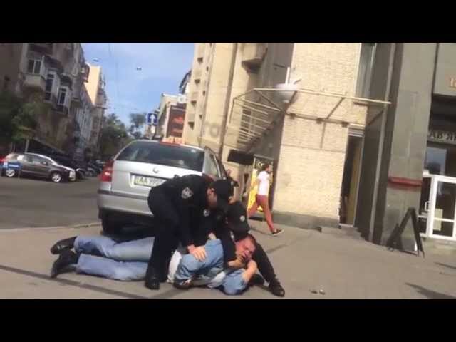 На Майдане Незалежности патрульные полицейские задержали таксиста, который не подчинился требованиям правоохранителей. Видео инцидента сняли на камеру прохожие.