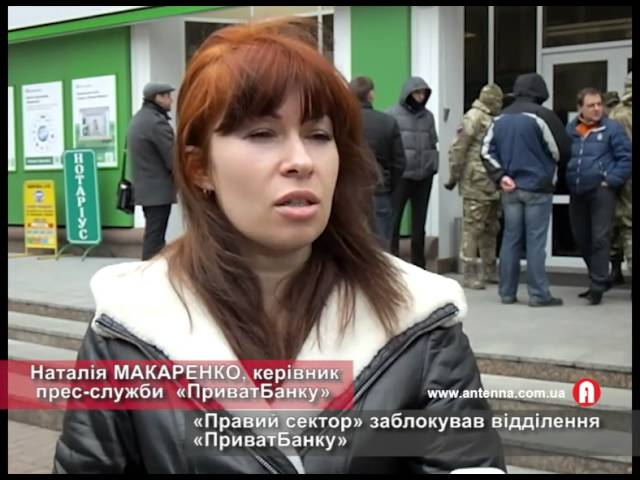 В Черкассах "Правый сектор" около 10 утра заблокировал главное отделение "Приват анка". Глава областной ячейки "ПС" Андрей Гоца заявил, что финучреждение не дает доступ к счетам организации "Центр обучения и реабилитации добровольцев".