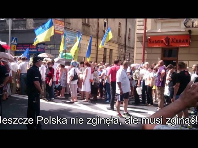 Некоторые из них несли плакаты с надписями "Бандеровцы и их приверженцы – вон из Польши", а также касающиеся Волынской трагедии.
