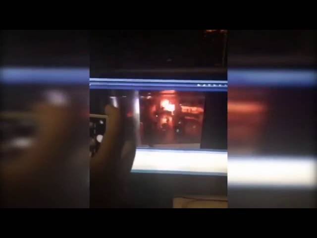 Затем от него отбегает человек. После этого раздается мощный взрыв, который озаряет все вокруг, затем летят щепки. Кадры взрыва были показаны в эфире телеканала CNN.
