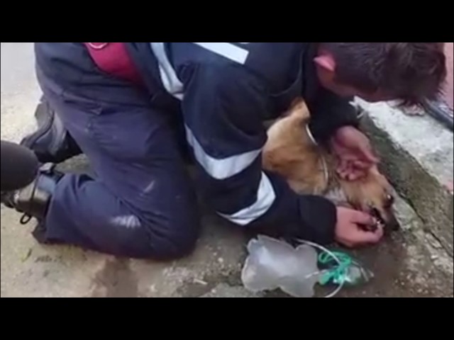 Спасатель Костаке Мугурел решил спасти жизнь маленькому животному. Он сделал ему массаж сердца и искусственное дыхание. Когда пес снова начал дышать Мугурел надел ему на морду кислородную маску и отправил в ветеринарную клинику.