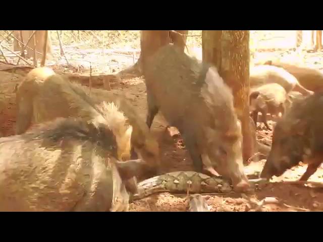 В одном из зверинцев, предположительно Таиланда, стадо свиней разорвала питона, который перед этим полакомился поросенком. Об этом написал Daily Mail 9 февраля.