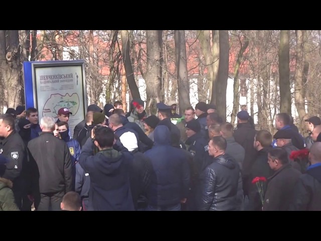 Потасовка произошла на Тарасовой горе в день годовщины дня рождения украинского поэта. Как сообщают журналисты, возлагать цветы на гору приехали в автобусе около 50-ти человек, которые представляют партию "Украинский выбор". На этот момент там находились члены "Гражданского корпуса. Азов" и ВО "Свобода", которые заблокировали автобус "живой цепью" и не пускали своих оппонентов.
