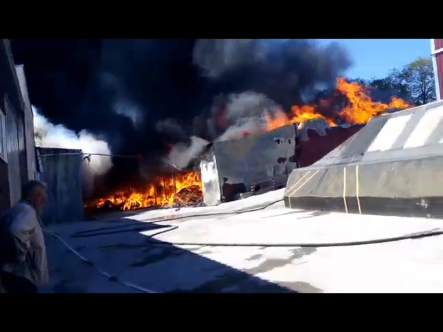 Мощное пламя угрожало распространиться на соседние помещение фабрики. Спасатели пытаются локализовать возгорание, для чего к месту происшествия стянуты большие силы ГСЧС.
