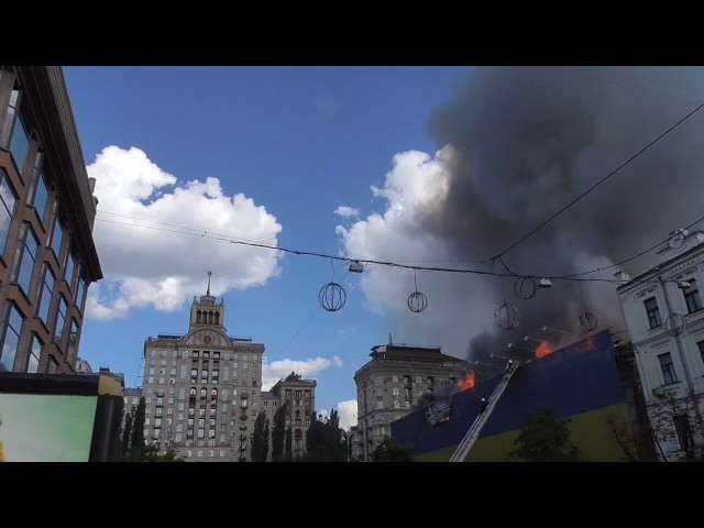 В непосредственной близости от горящего здания находится Печерский районный суд города Киева, а напротив – ЦУМ и здание КГГА.