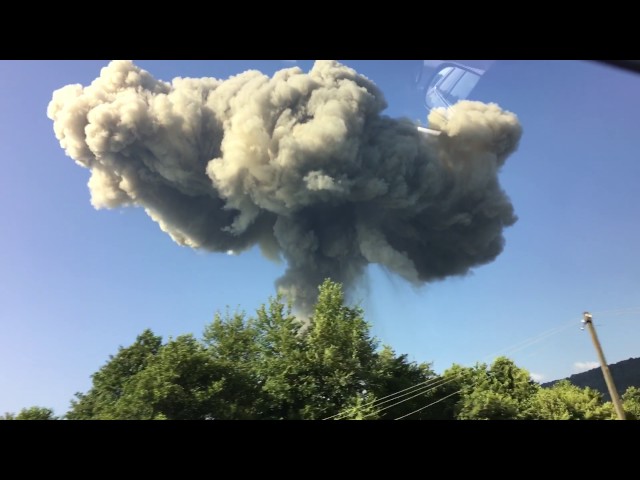 Так, на одном из видео виден огромный столп дыма, а девушка за кадром говорит, что от взрывов у нее заложило уши, также она видела огромное пламя.