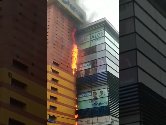 На западе Москвы тем временем горит ТРЦ "Филион". Загорелась часть обшивки здания на уровне фитнес-клуба, посетителей центра эвакуировали.