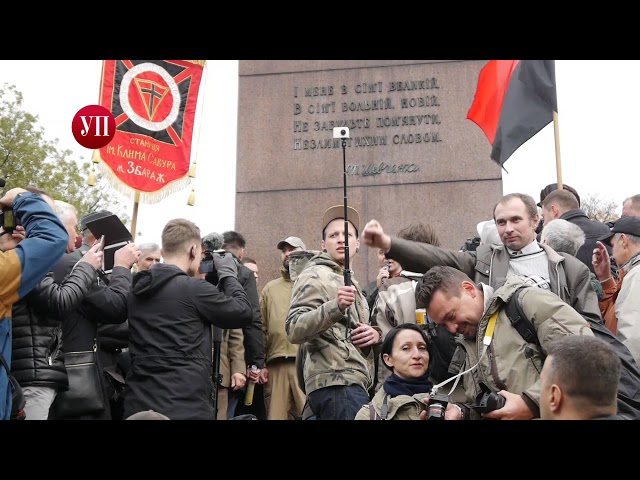 Во время митинга возле памятника Тарасу Шевченко задержали мужчину, который "зиговал" и выкрикивал "Слава нации, смерть врагам", "Украина превыше всего", передает "Украинская правда".