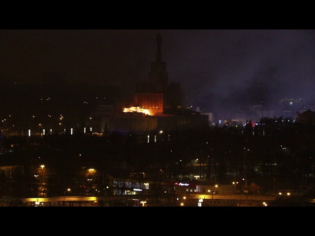 Вечером во вторник, 12 декабря, В Москве (Россия) на загорелись строительные леса на территории центрального павильона выставочного комплекса ВДНХ. Как сообщило московское управление МЧС, пожар начался в 23.07.