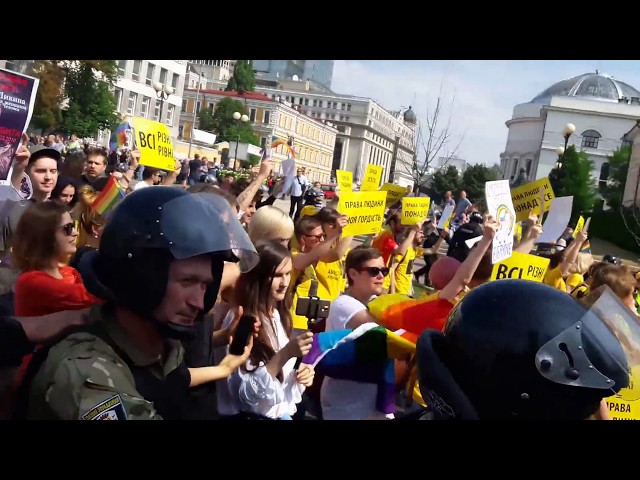 Утром 17 июня в украинской столице начались столкновения между правоохранителями и представителями националистической организации С14. Последние в количестве примерно 150 человек с самого утра перекрыли улицы Владимирская-бульвар Тараса Шевченко, чтоб помешать проведению "Марша равенства". Об этом сообщили в пресс-службе полиции.