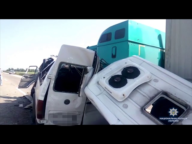 Водитель микроавтобуса Volkswagen, перевозивший 17 пассажиров по маршруту "Одесса-Гомель", не справился с управлением и врезался в стоящую на обочине фуру. Водитель и четыре пассажира погибли на месте.